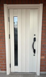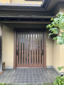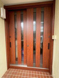 玄関引戸が古くなってしまい、傷が目立ち 鍵も回しにくくなってしまったので、さくら住建さんに玄関工事をお願いしました。