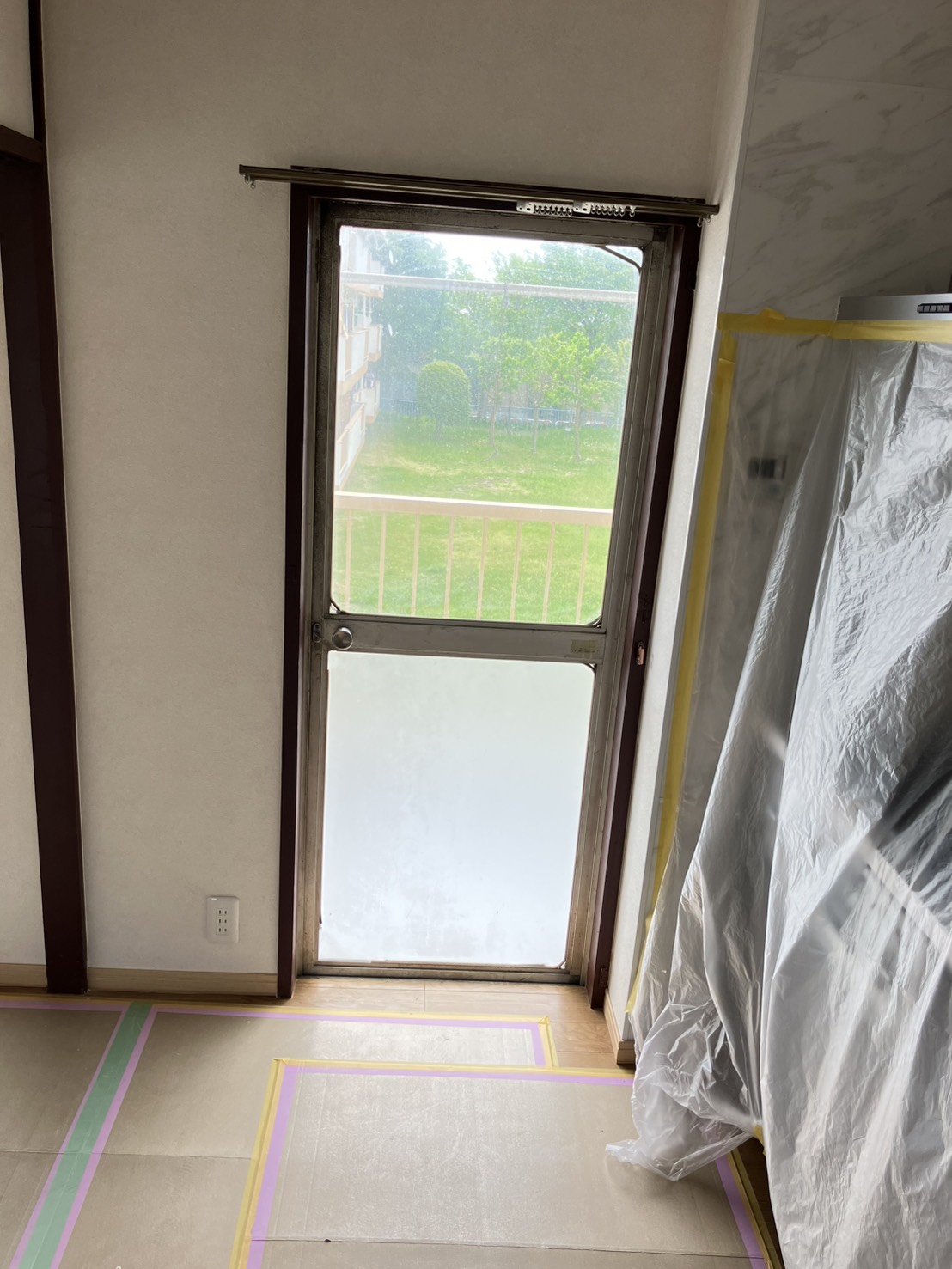 築59年の団地にて、バルコニー側の框ドア交換工事を行いました。
