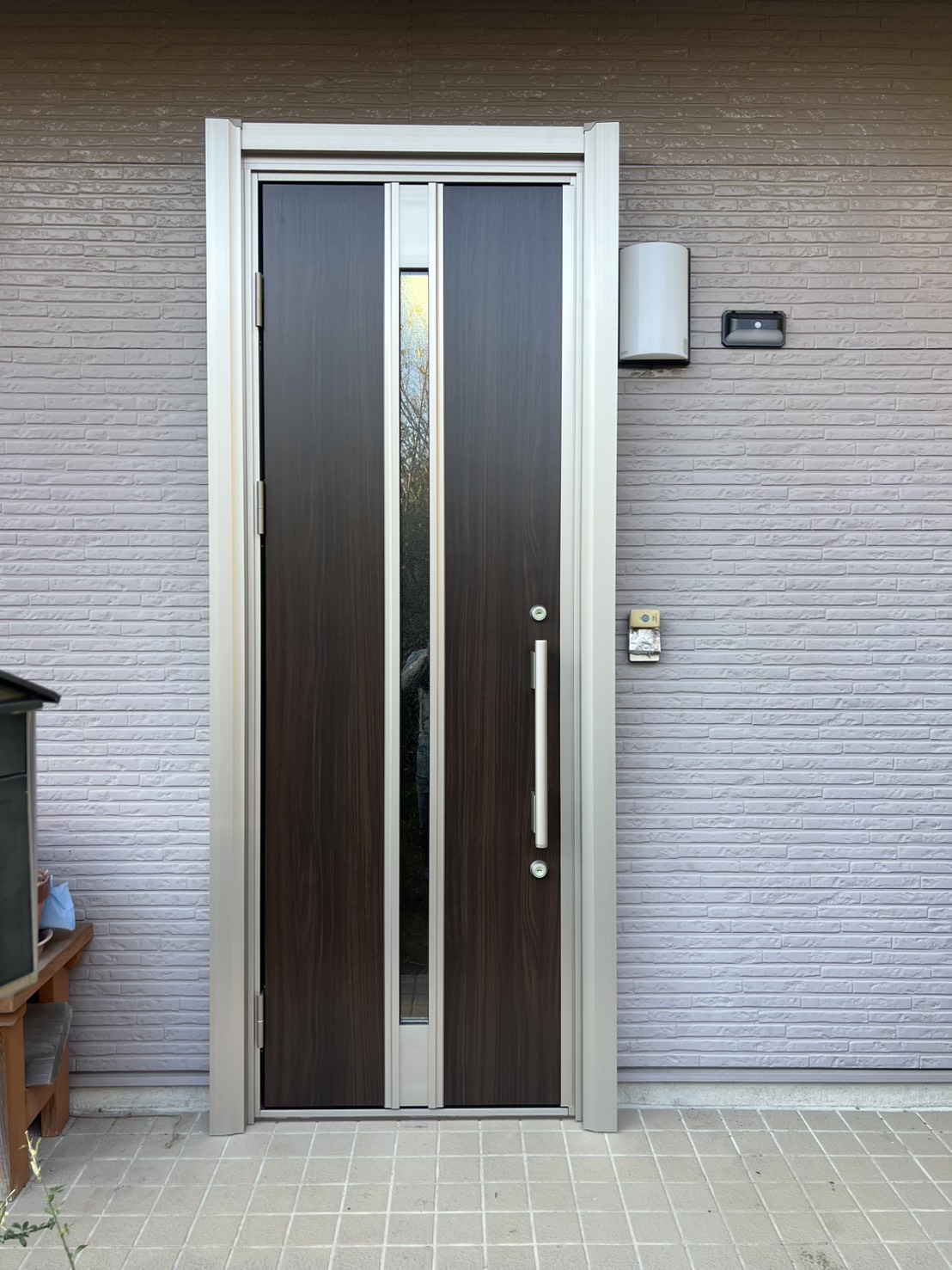 プラチナステンの枠と組み合わせることで、すっきりとした上品な玄関まわりに仕上がりました。