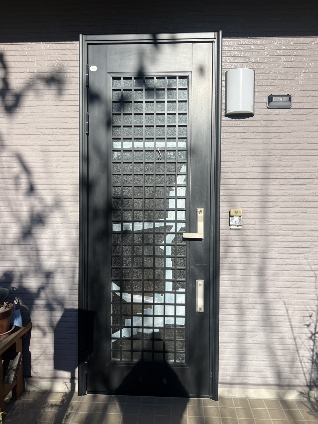 さらに、ガラス部分が割れてしまい、テープで補強されている状況で、防犯面や安全面でもご不安があるとのことでした。